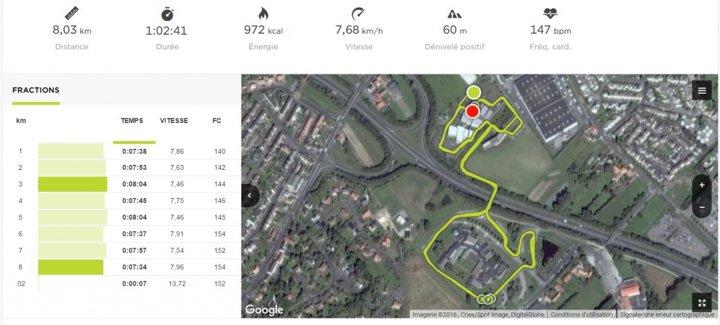 C'est donc mon record du moment avec une vitesse moyenne de 7.93 Km/H sur plus de 10 km !
